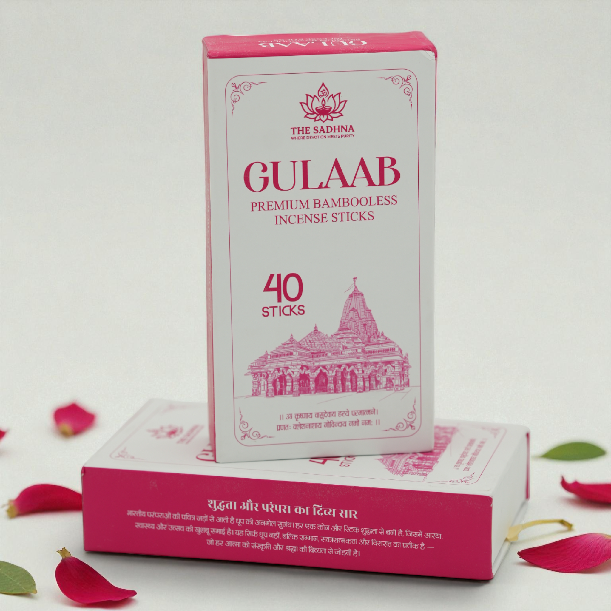 Immerse yourself in the divine fragrance of Gulaab – a premium collection of bambooless incense sticks by The Sadhna. Crafted with purity and devotion, each stick releases a soothing rose aroma that calms the mind, uplifts the spirit, and creates a serene ambiance.