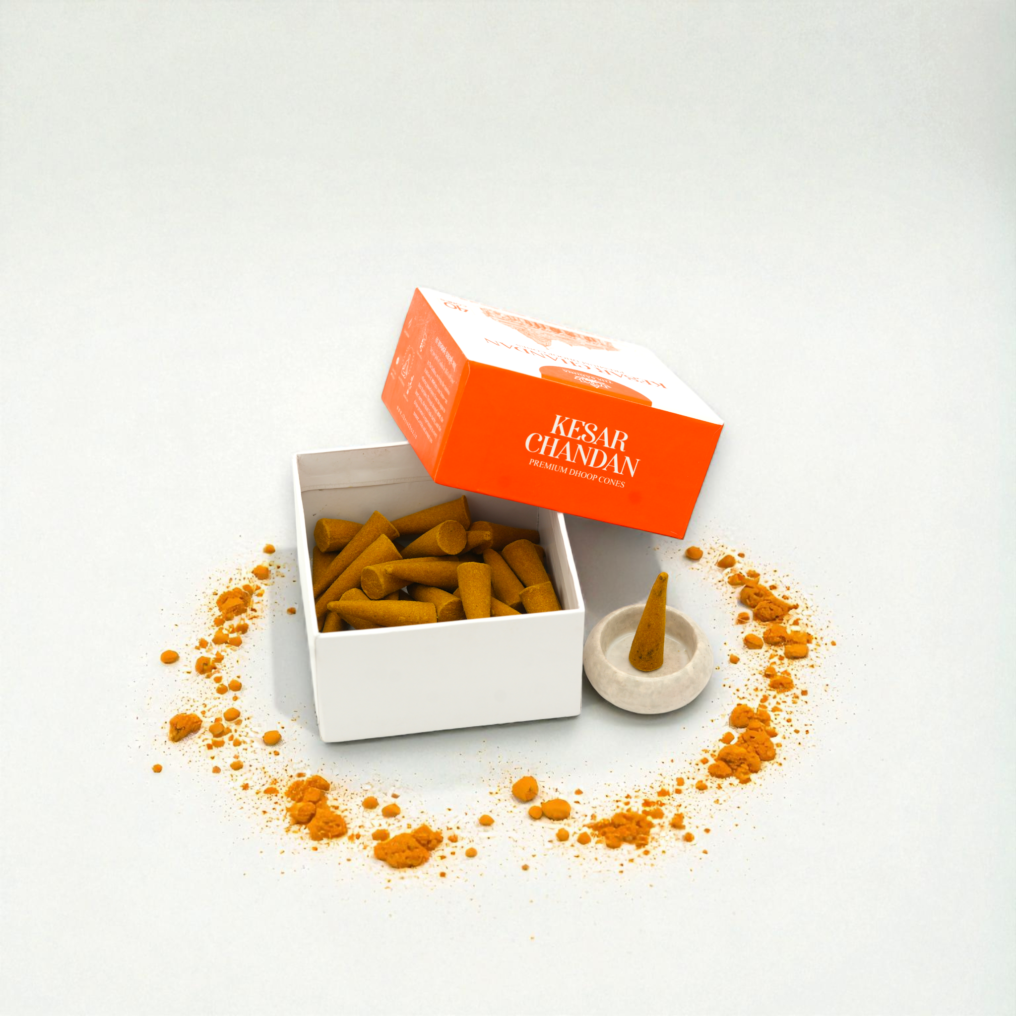 Experience the divine blend of Kesar (Saffron) and Chandan (Sandalwood) with The Sadhna Premium Dhoop Cones. Each cone is handcrafted to fill your space with a calming, spiritual aroma that purifies the environment and promotes peace of mind.